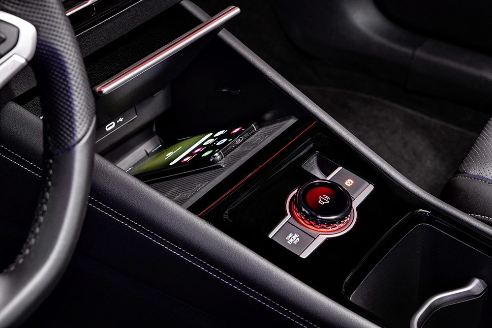- Tombol pada konsol tengah mempunyai skrin mini dan boleh mengawal suara audio, lampu latar belakang dan profail pemanduan. Tetapan kereta juga boleh dibuat melalui arahan suara.