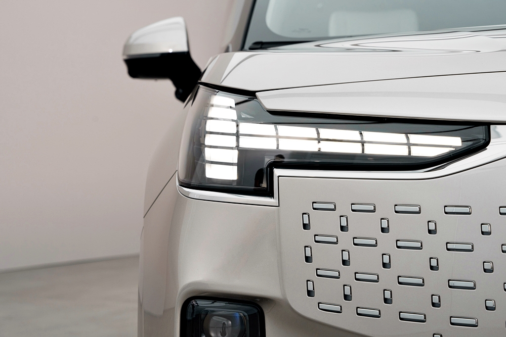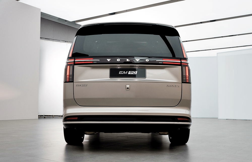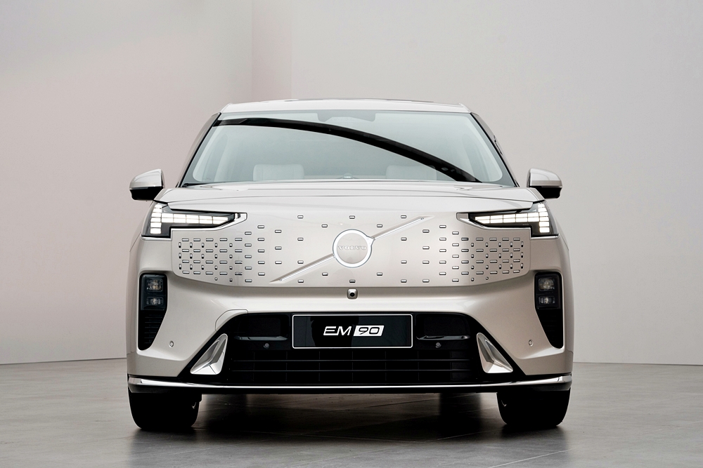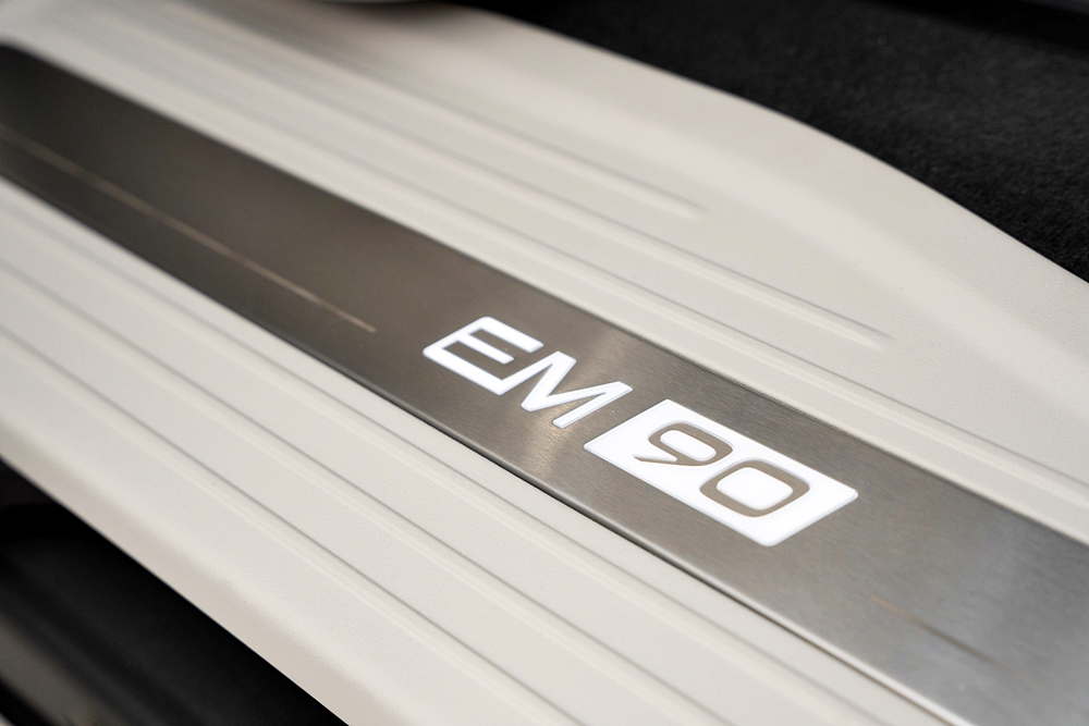 Dari depan, EM90 adalah lanjutan kepada model baharu Volvo. Paling jelas dapat dilihat pada lampu utama bentuk tukul.