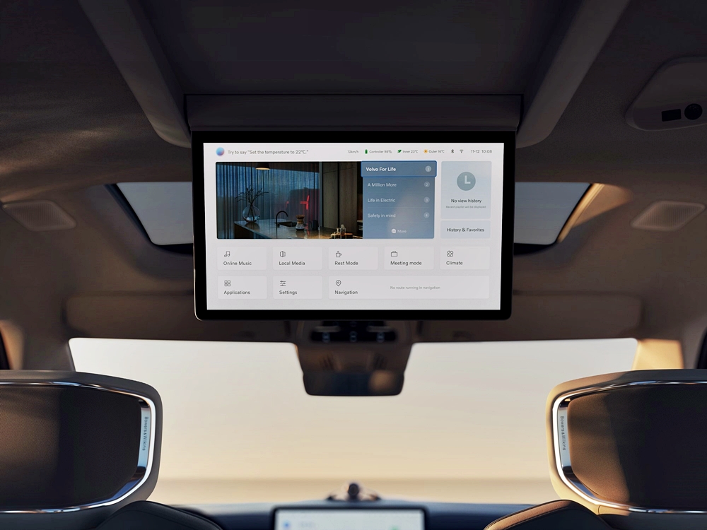 Skrin, kerusi, tingkap, penyaman udara dan pencahayaan akan dilaraskan mengikut keadaan. Selain kaedah biasa, Volvo EM90 boleh menggunakan kunci digital dan fungsi kawalan jauh melalui aplikasi Volvo Cars.