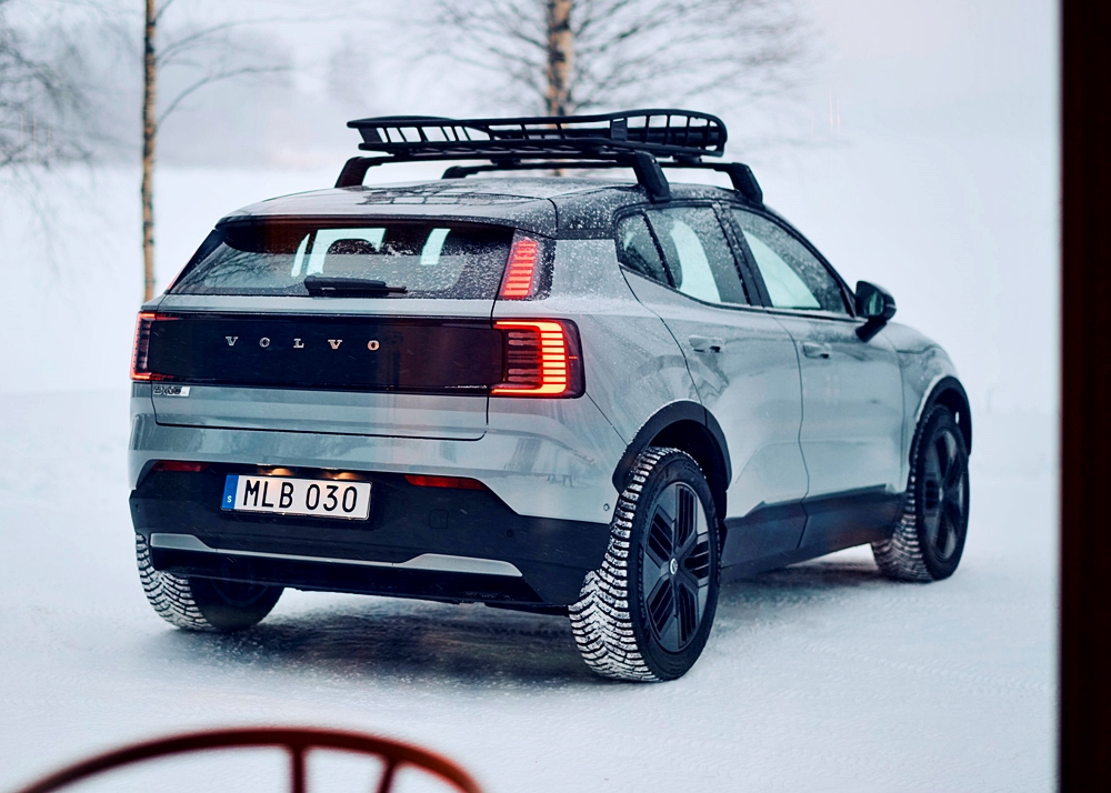 - Selain pendakap sekeliling gerbang roda, EX30 Cross Country tampil unik dengan panel gril depan yang memaparkan lukisan banjaran gunung Kebnekaise di Sweden Artik.