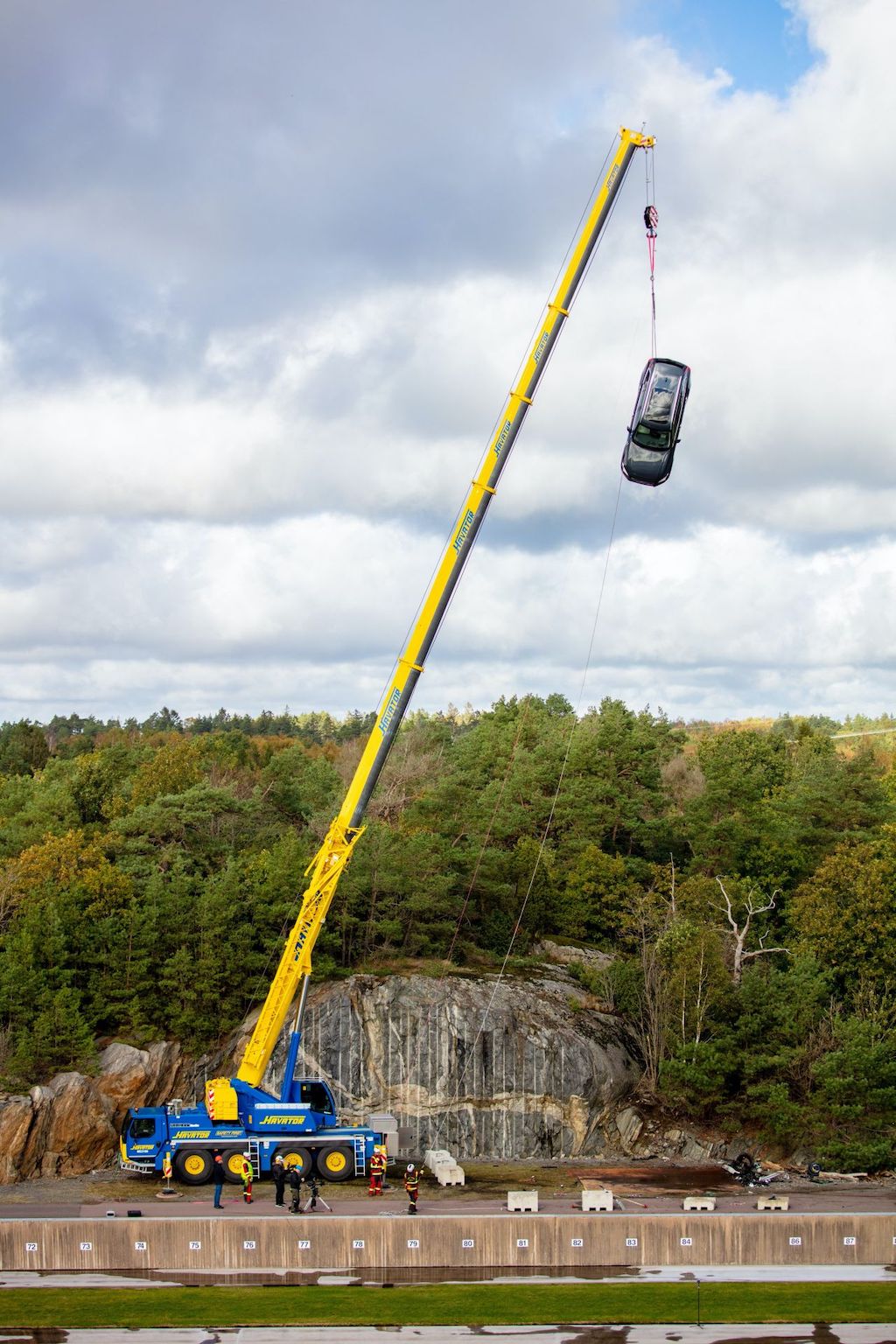Penyiasat Kanan Pasukan Penyelidik Kemalangan Trafik Volvo Cars, Håkan Gustafson berkata, kru biasanya memiliki kereta kemalangan di makmal, tetapi ini kali pertama mereka menjatuhkan kereta dari kren.