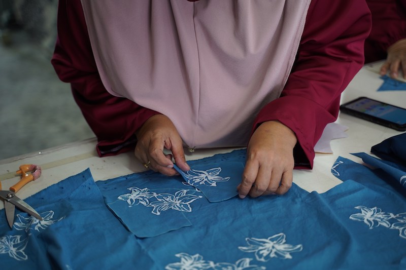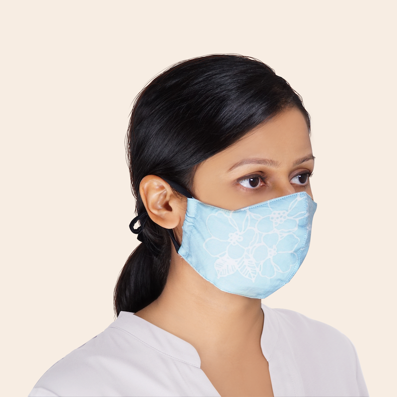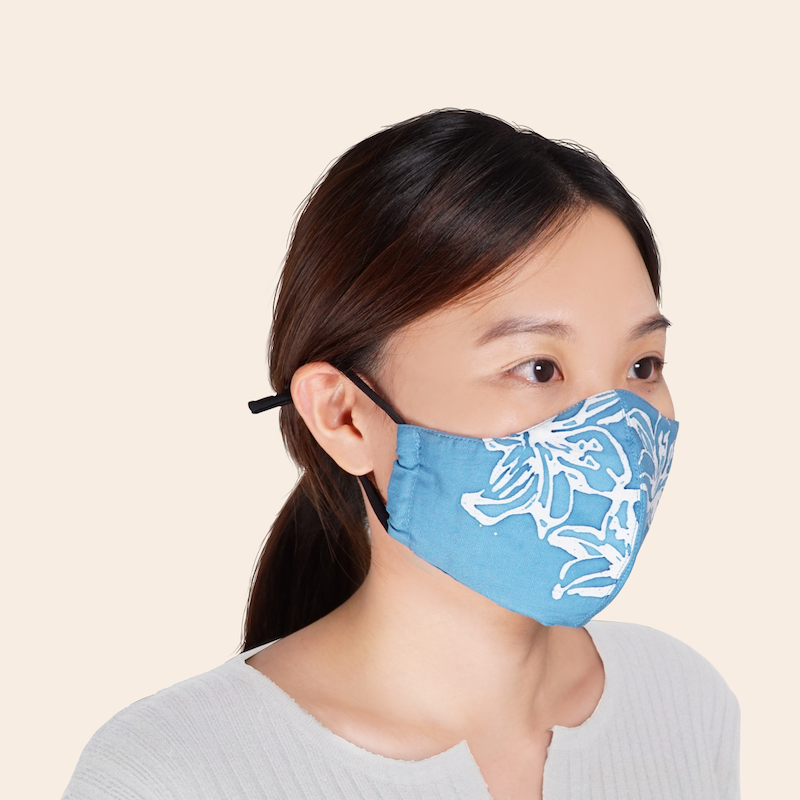 Pengasas dan Pereka Fesyen di Three Little Ahmads, Datin Azrene Ahmad berkata, corak bunga pada pelitup muka jenis fabrik itu jarang ditemui pada produk batik tradisional.