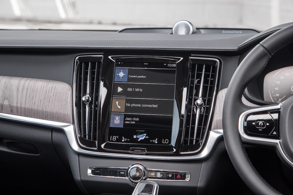 - Ruang kabin dilengkapi unit infotainment dengan ciri Volvo Sensus, terdiri daripada dua port USB depan untuk sambungan Apple CarPlay dan Android Auto serta skrin sentuh 9 inci bentuk potret.