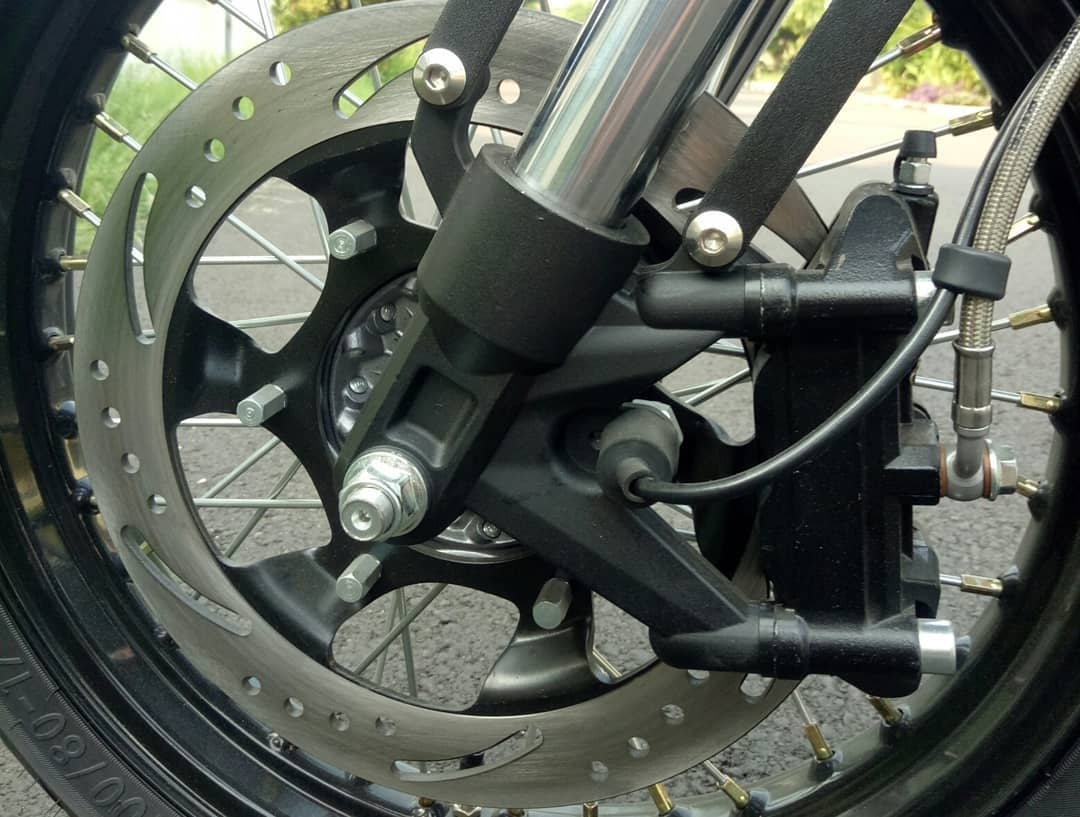 Antara ciri moden yang diadun bersama rupa klasik Vox 125 ini ialah sistem brek cakera di depan dan belakang. Brek depan didatangkan dengan kaliper radial yang ditambatkan pada fork terbalik (USD). Ciri lain ialah penghidup elektrik, lampu LED, panel meter digital dan rim jejari 17 inci.