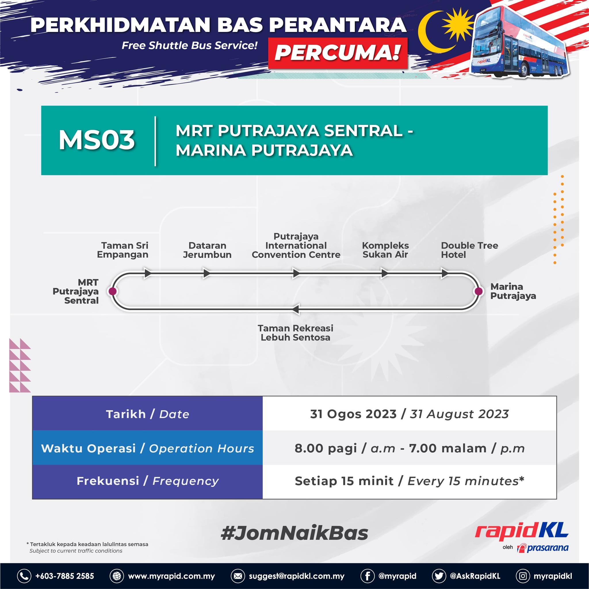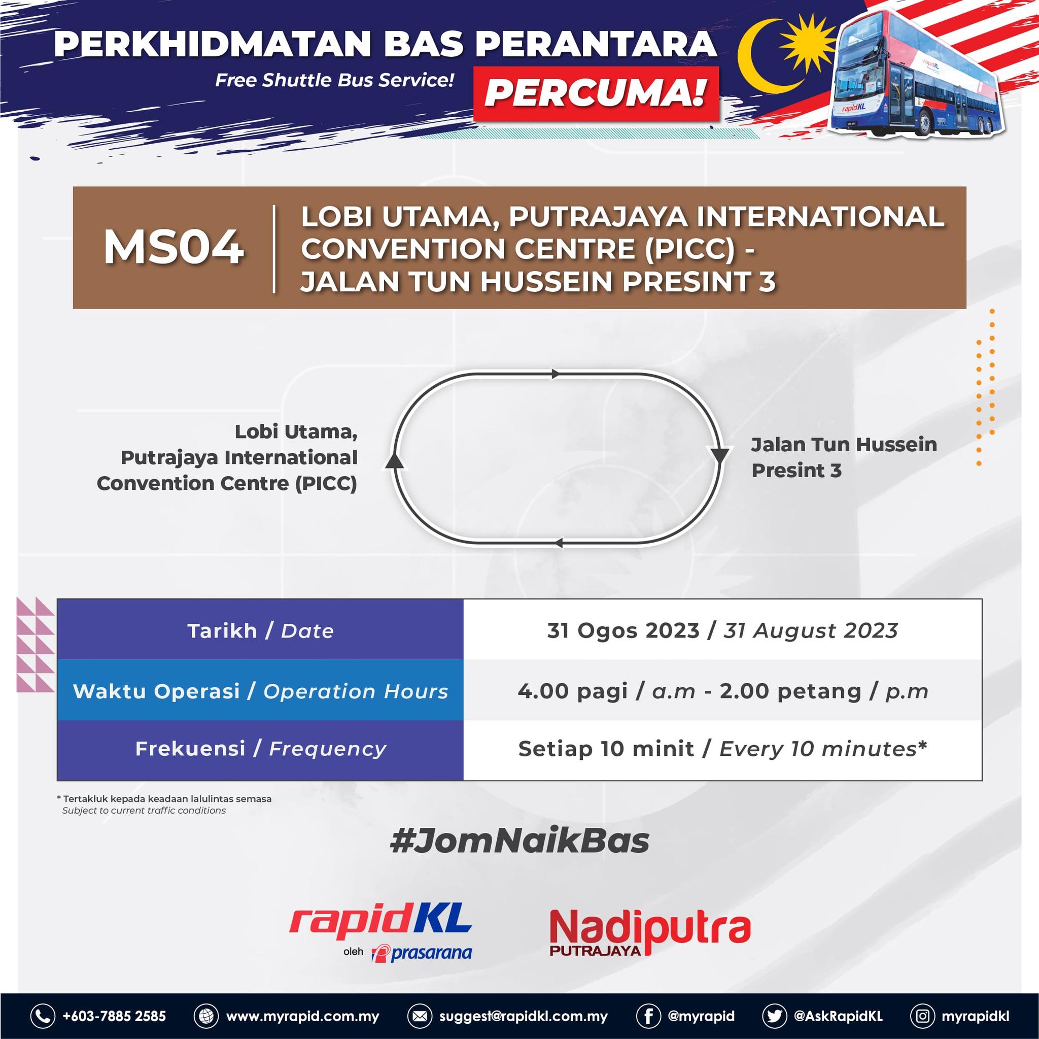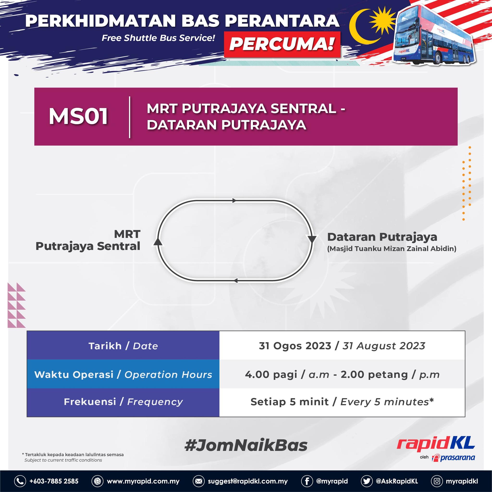 Justeru orang ramai boleh menggunakan perkhidmatan awam Rapid KL pada 31 Ogos untuk ke Putrajaya, atau ke mana-mana destinasi diingini.