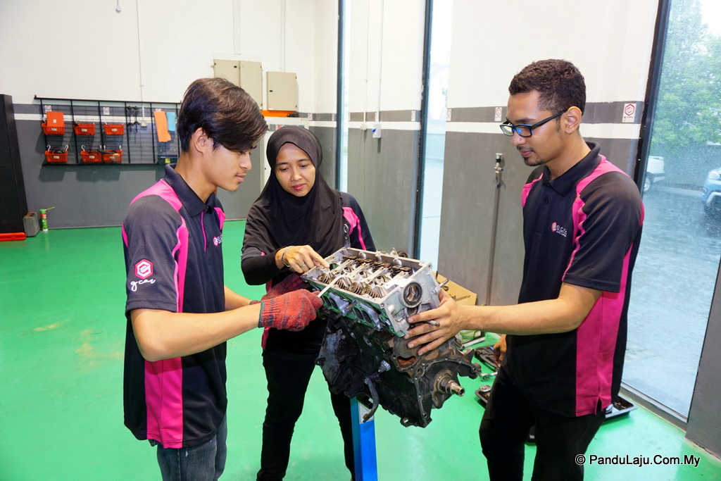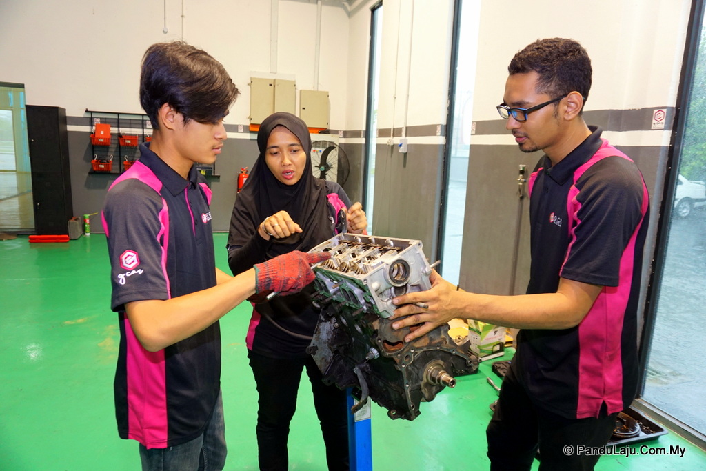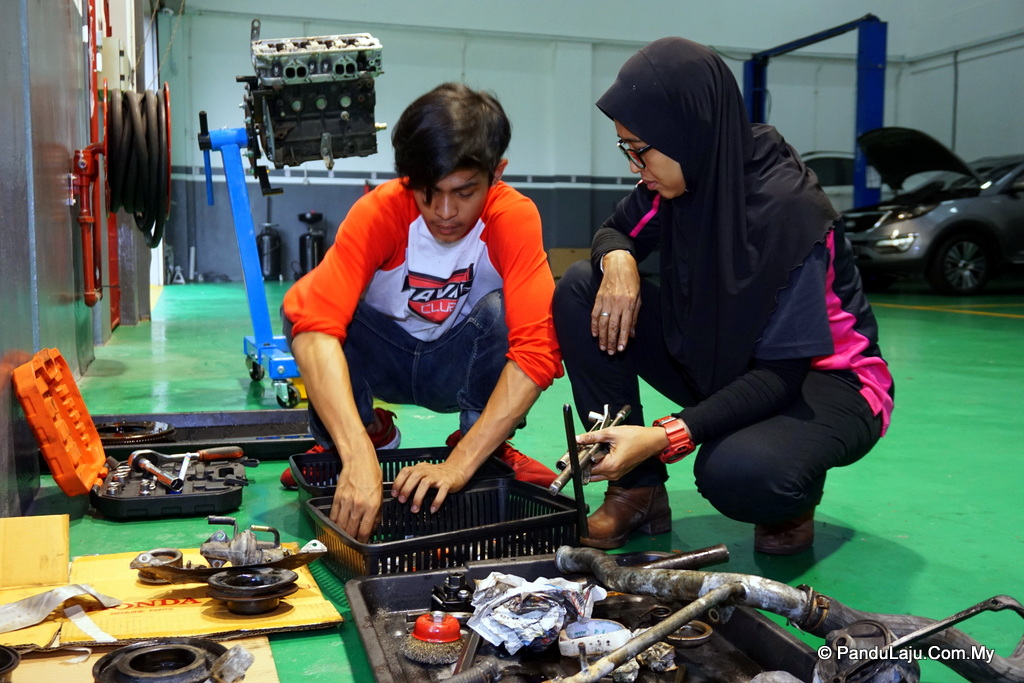“Tidak boleh takut dan geli pegang benda kotor macam minyak hitam, gris dan kotoran lain. Sebab untuk kenal pasti masalah secara mendalam, kadangkala kita perlu tanggalkan semua komponen kereta,” katanya sambil tersenyum.
