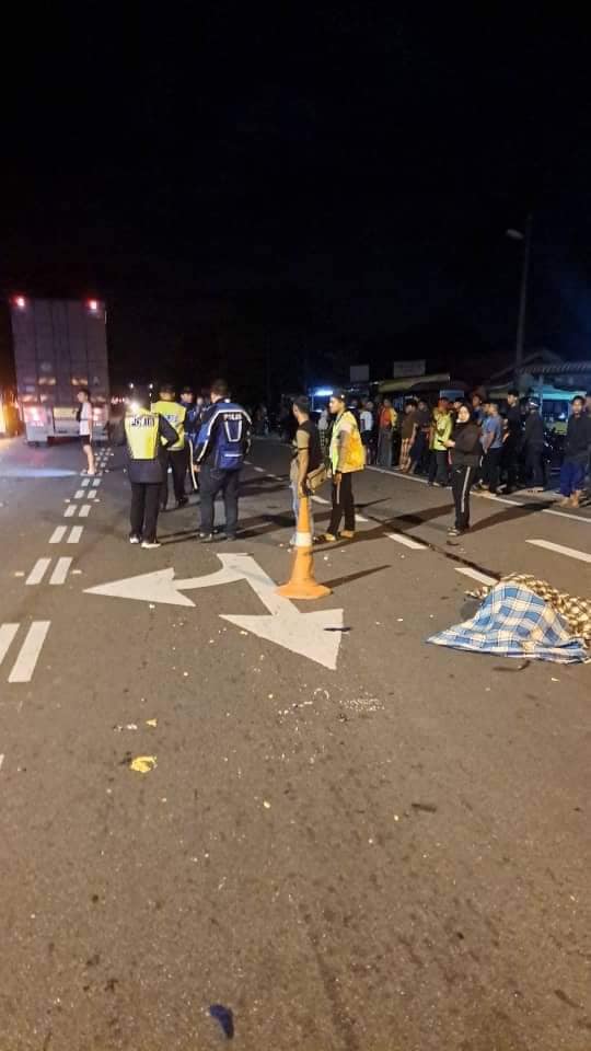 Sebuah lori treler ketika itu sedang bergerak dari Kota Bharu, Kelantan untuk menghantar barang ke Pulau Pinang, dan tidak sempat membrek hingga terlanggar motosikal mangsa.