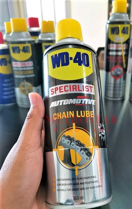 WD-40 Specialist Automotive Chain Lube bukan saja melincirkan rantai motosikal, tetapi juga melindungi komponen utama itu daripada masalah kakisan, dan tahan cuaca serta boleh digunakan semua jenis motosikal.