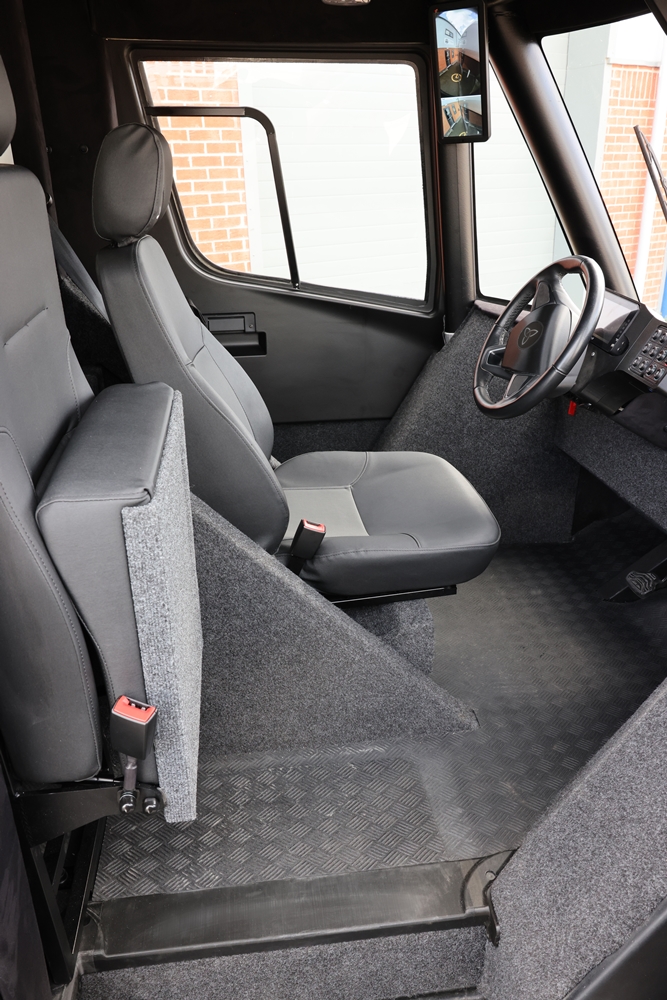 Satu kelebihan utama platform itu, kabin ergonomik dengan kedudukan di tengah membolehkan pemandu keluar dari sisi bahu jalan, dan boleh dipasang satu, dua atau tiga kerusi.