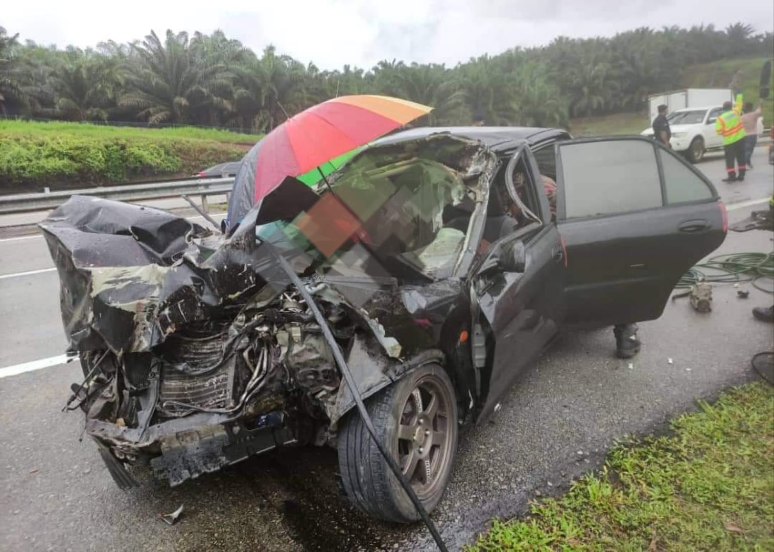 Mangsa maut dalam insiden jam 2.55 petang ialah pemandu, Muhammad Nur Izzuddin Mohd Razali, 21, dan penumpang depan, Siti Fairuz Adnan, 28, manakala Nurulain Zulfardliyana Mat Daud, 34, yang duduk di bahagian penumpang belakang parah di muka.
