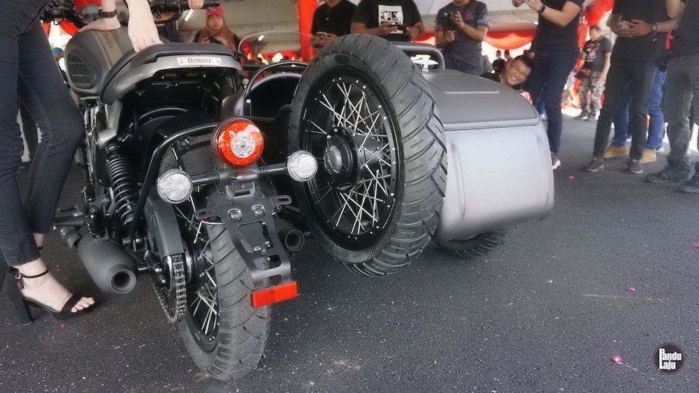 WMoto Bobbie VII versi sidecar itu dilengkapi beberapa aksesori tambahan yang mungkin ditawarkan ke pasaran tempatan selepas mendapat kelulusan pihak berkuasa.