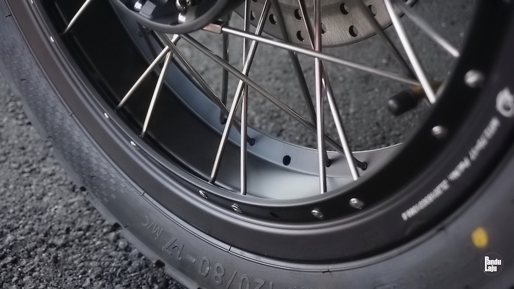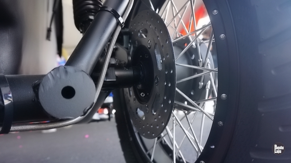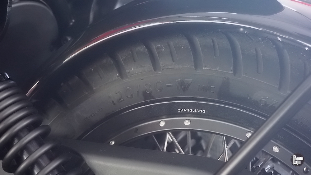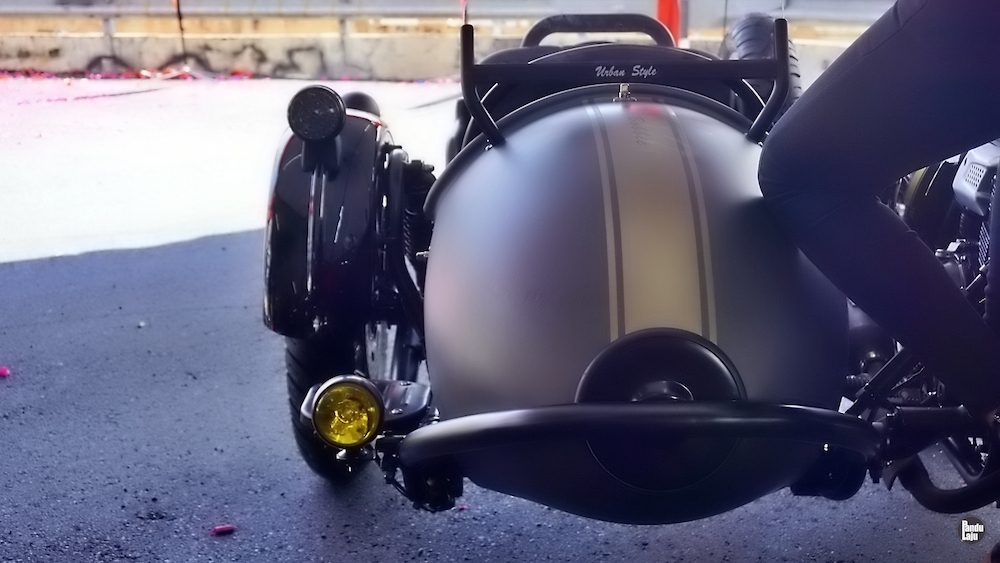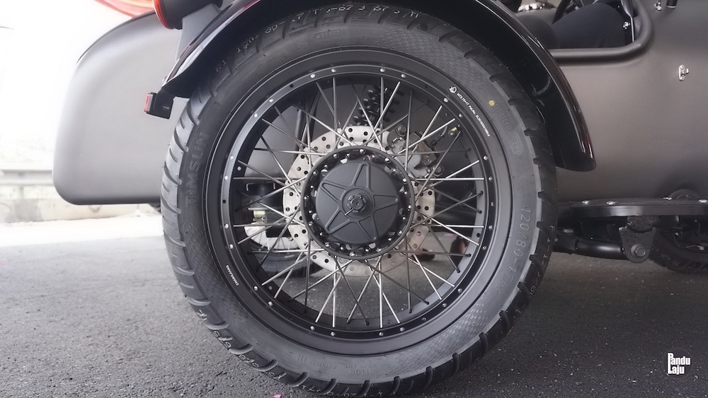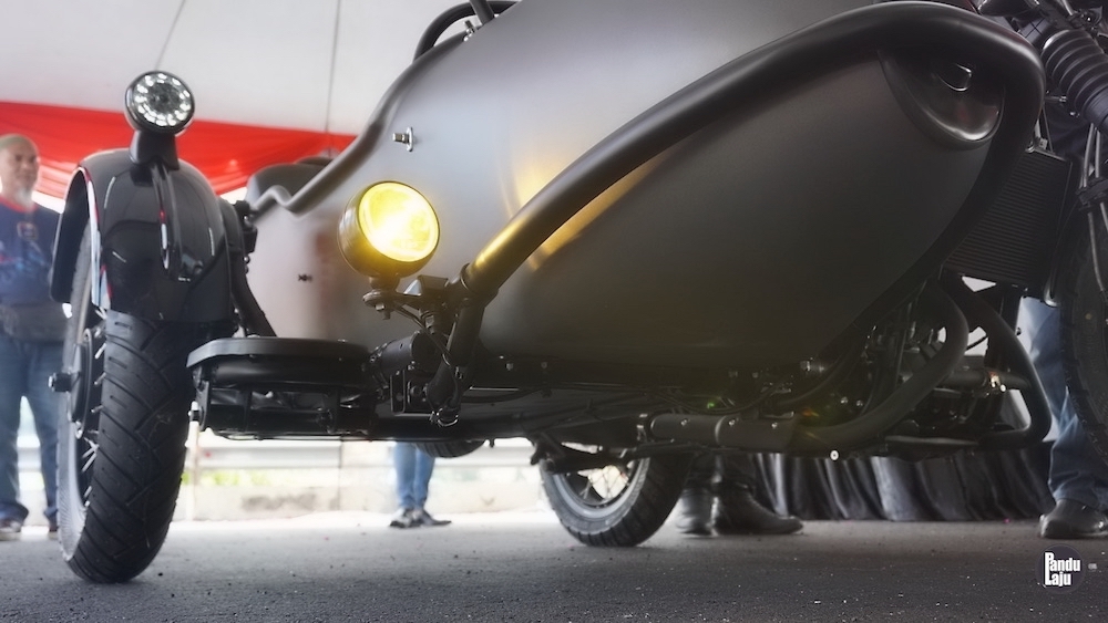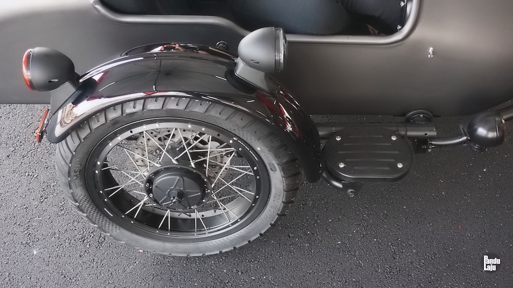 Model tiga roda itu dilengkapi tayar ganti yang ditempatkan antara motosikal dan Sidecar. Roda ketiga Sidecar pula dilengkapi sistem brek cakera.