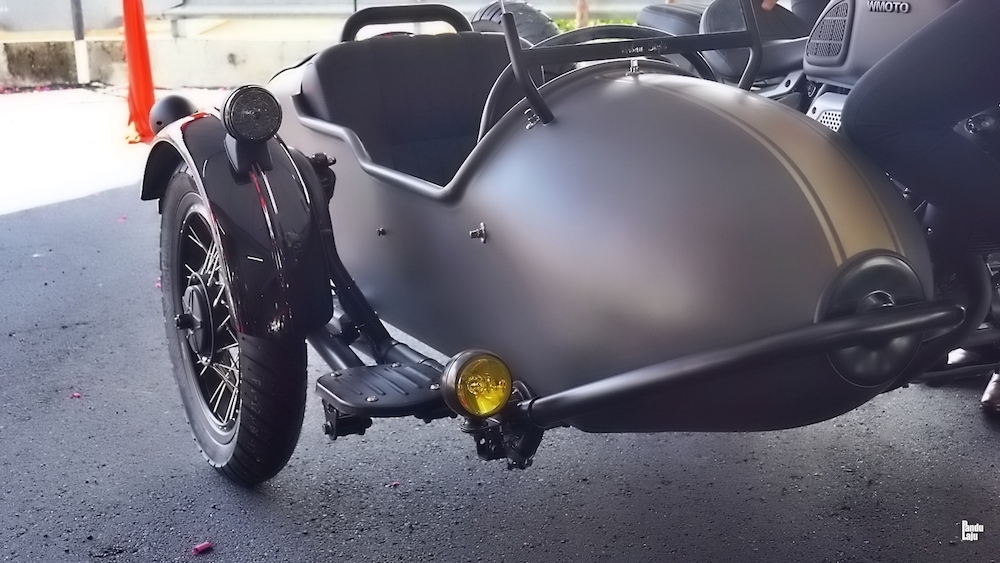 Sidecar diikat pada sebelah kanan WMoto Bobbie VII (2023) dan dilengkapi pelana yang agak selesa, termasuk tali keledar, pelapik sisi kabin dan karpet kaki. Di sebelah kiri pelana, disediakan suis lampu sisi dan soket USB untuk pembonceng.