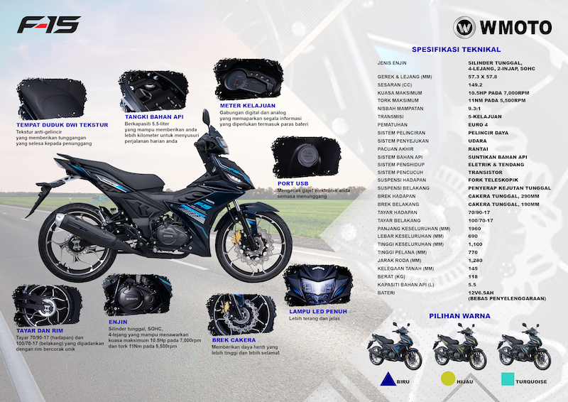 MFORCE Bike Holdings melancarkan model kapcai terbaharu, WMoto F-15 (2022) yang menawarkan ekonomi bahan api, harga ampu milik dan sesuai untuk tunggangan harian pada harga jualan asas RM5,999 sahaja, tidak termasuk insurans, pendaftaran dan cukai jalan.