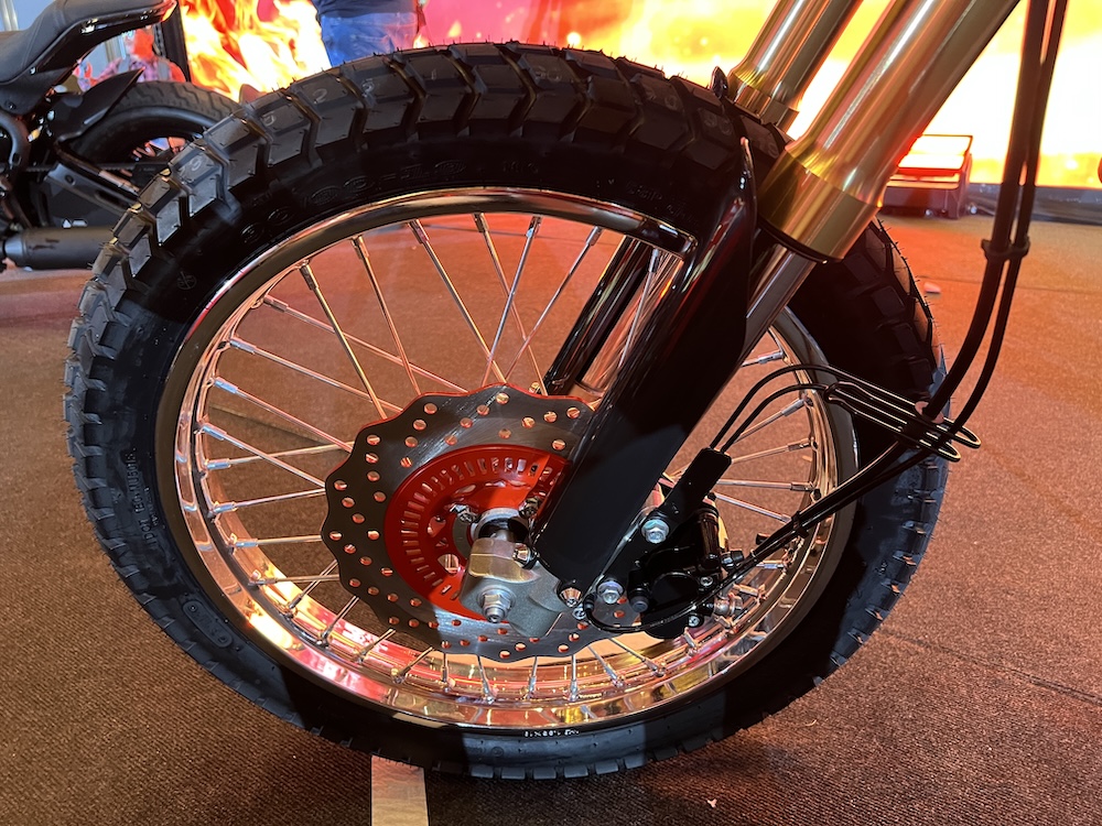 Bahagian roda menggunakan tayar 90/90-19 (depan) dan 110/90-17 (belakang), serta dipadankan rim jejari untuk ketahanan dan kebolehsuaian atas pelbagai permukaan jalan.