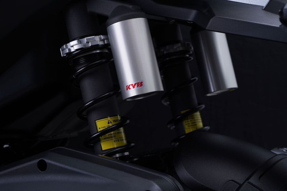 - Sistem suspensi fork terbalik (USD) Kayaba 37mm di depan, dan absober Kayaba (belakang).