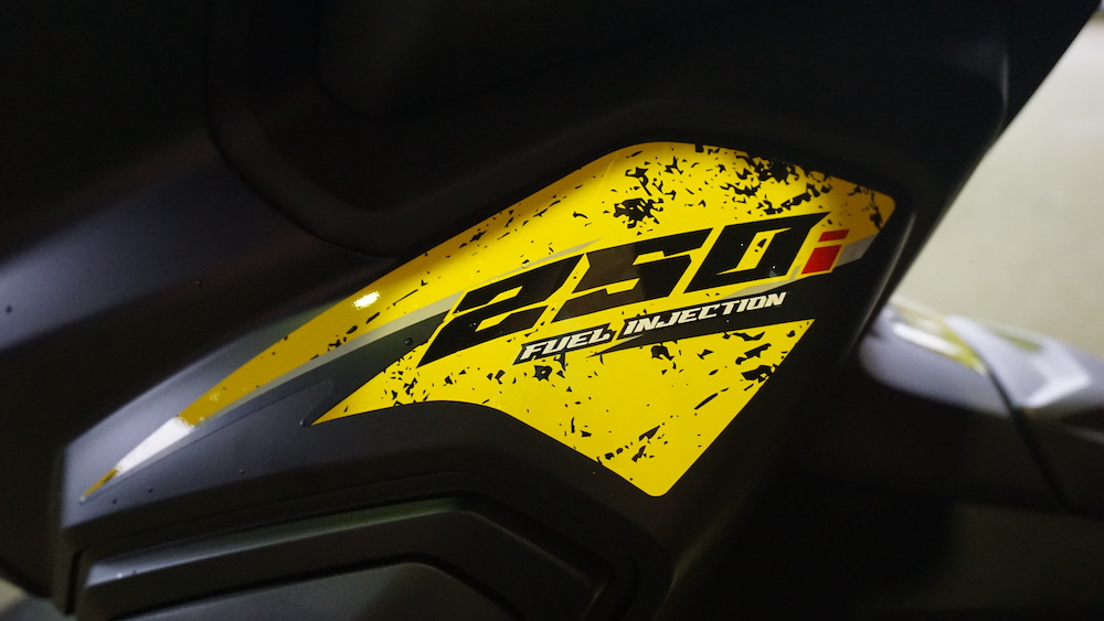 - Dijana enjin 4-lejang 4-injap silinder tunggal 249cc SOHC penyejukan cecair dengan sistem suntikan bahan api (FI) berkuasa ialah 24hp @ 9,750rpm dan tork 23Nm @ 6,750rpm, manakala transmisi automatik CVT.