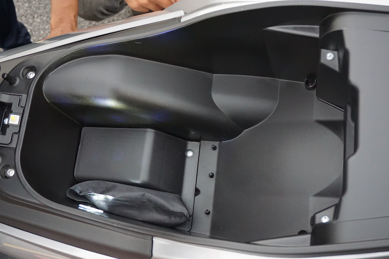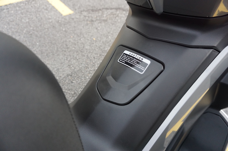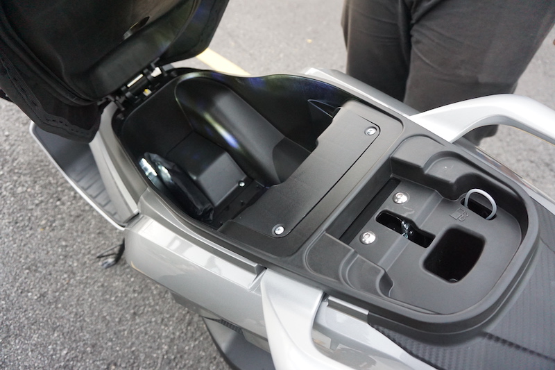 - Ruang simpanan bawah pelana 13 liter dan disediakan dua port pengecas, USB dan soket 12v untuk mengecas telefon pintar dan peranti lain.