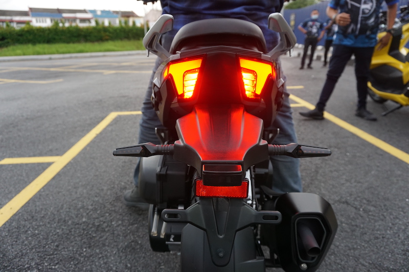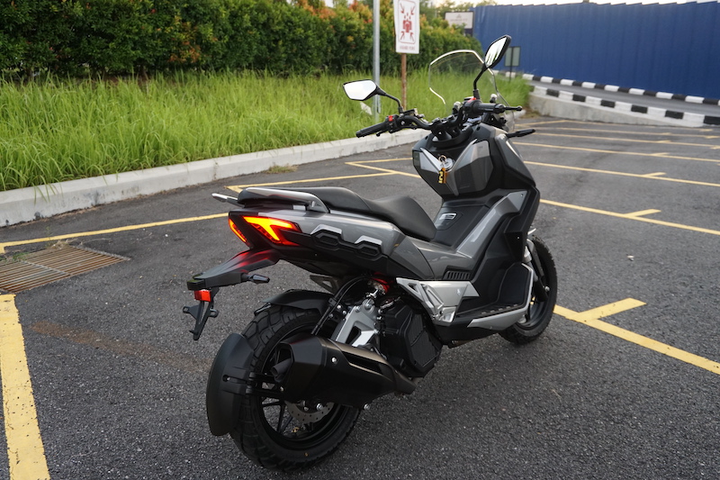 - Skuter seberat 143kg ini menawarkan kapasiti tangki 11 liter dengan jarak perjalanan hingga 400km jika ditunggang pada halaju kira-kira 80kmj.