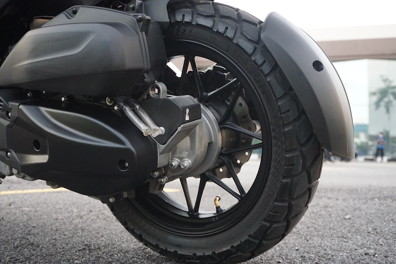 - Kedua-dua roda menggunakan sistem brek cakera tunggal dan dilengkapkan Sistem Brek Anti-Kunci (ABS) dwi-saluran. Rim 14 inci dan dibalut tayar jenis semua rupa bumi (all-terrain) 100/80 di depan) dan 120/70 di belakang.