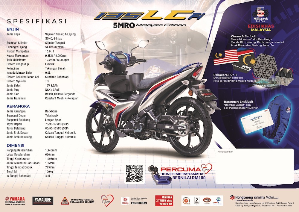 HONG Leong Yamaha Motor (HLYM) melancarkan satu lagi model istimewa, iaitu Yamaha 135LC (Fi) 5MRO Malaysian Edition yang terhad kepada 5,000 unit sahaja, berharga RM9,198.