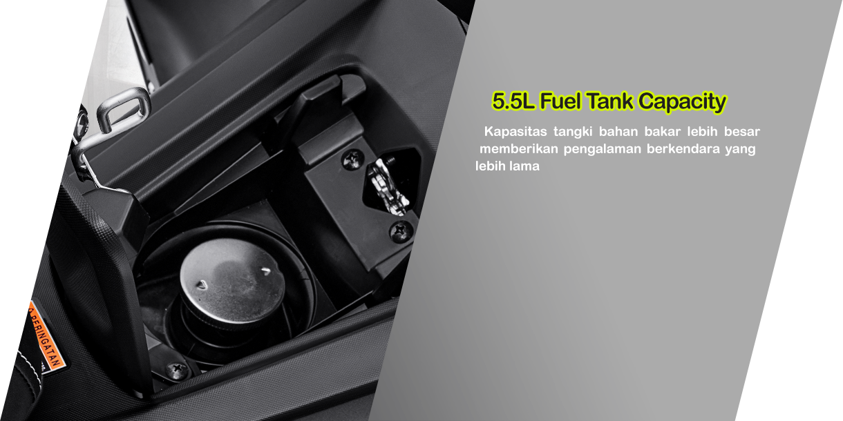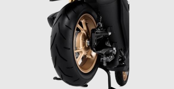 Bahagian pelana pembonceng direka lebih selesa dan dipasangkan bar grip yang disepadukan dengan badan. Bahagian roda menggunakan fork teleskopik di depan dan absorber kembar (varian ABS diberikan subtabung) untuk prestasi redaman lebih optimum, manakala tayar jenis tiubles saiz 110/80 R14 (depan) dan 140/70 R14 (belakang).