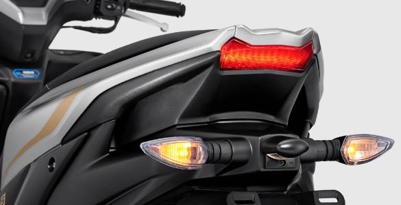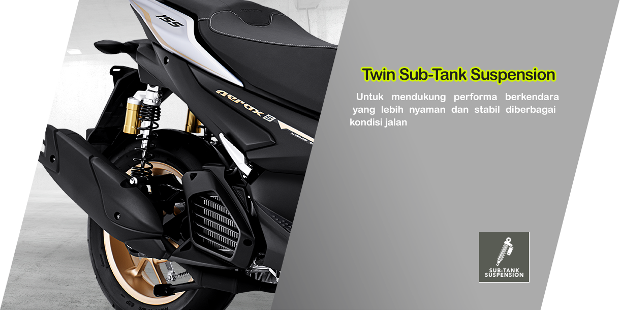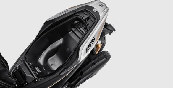 Bahagian roda depan menggunakan sistem brek cakera di depan dan brek dram di belakang, manakala kapasiti tangki mampu mengisi 5.5 liter petrol. Aerox 155 Connected (2021) juga memiliki ruang storan lebih besar.