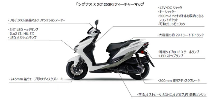 Cygnus-X dijana enjin 125cc SOHC berkuasa 9.6hp @ 7, 500rpm dan tork maksimum 9.9Nm @ 6,000rpm.