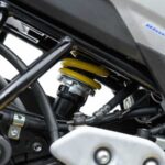 • Sistem suspensi jenis fork teleskopik (depan) dan monoshock boleh laras prabeban (belakang).
