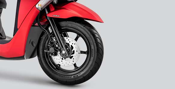 Bahagian roda menggunakan rim 12-inci yang dibalut tayar saiz 100/90 (depan) dan 110/90 (belakang). Cengkaman membrek diserahkan kepada brek cakera (depan) dan brek dram (belakang) yang dimantapkan dengan suspensi fork terbalik (depan) dan absorber koil sebelah (belakang).