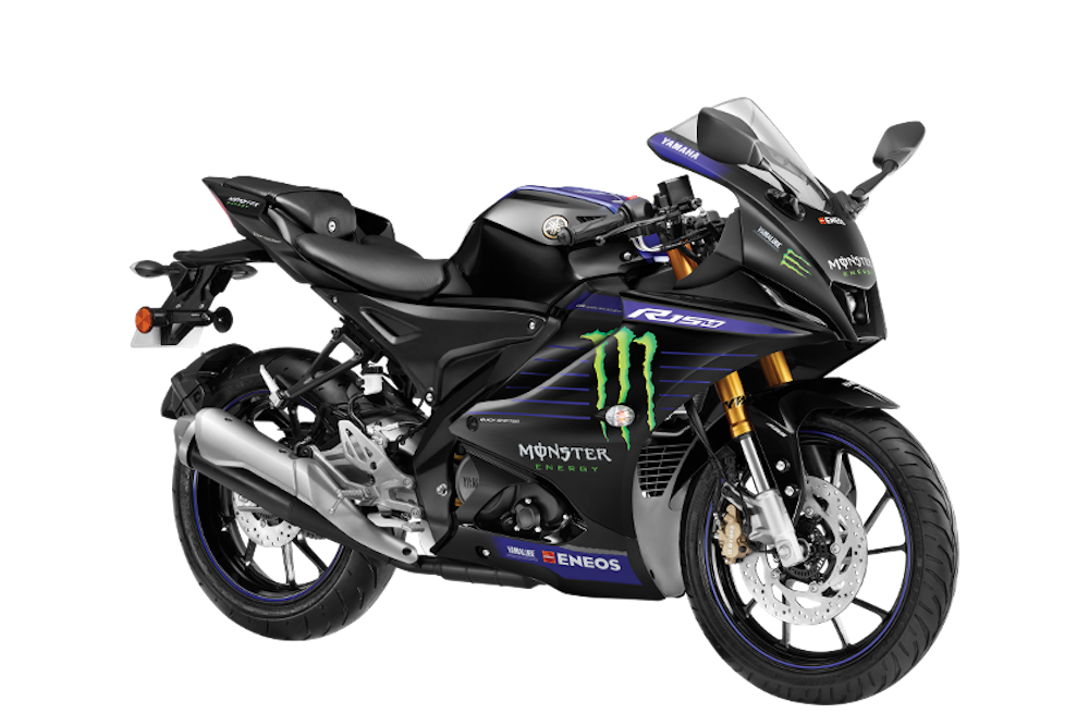 YAMAHA Motor India mengumumkan tawaran empat model edisi Monster Energy MotoGP (2022) untuk model sportbike R15M, naked bike MT-15 V2.0, termasuk skuter Aerox 155 dan RayZR 125.