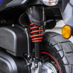 Bahagian roda menggunakan tayar dwi-guna Maxxis yang membalut rim 12 inci di depan 10 inci di belakang. Suspensi belakang dipasangkan spring tunggal berwarna merah supaya kontras dengan warna badan.