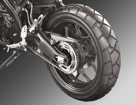 XSR 155 menggunakan sistem suspensi jenis fork terbalik (USD), tayar profil dwi-guna bersaiz 110/70 (depan) dan 140/70 (belakang), manakala kedua-dua rim bersaiz 17 inci yang setiap satu roda dipasangkan sistem brek cakera.