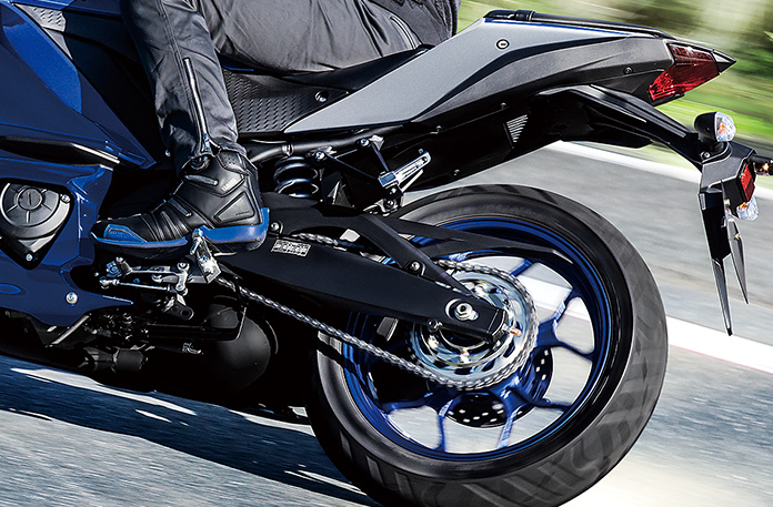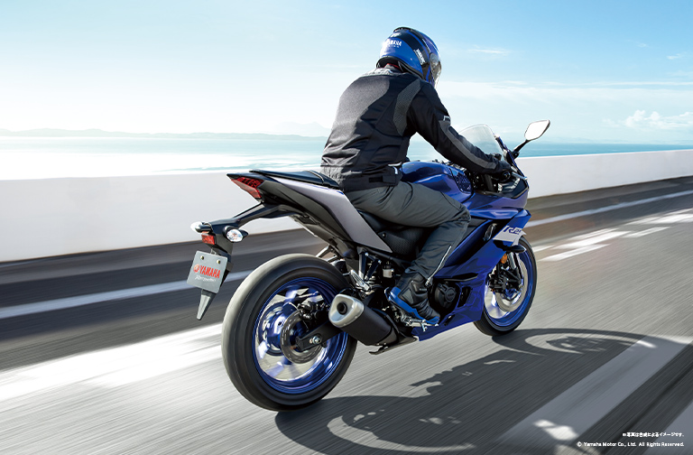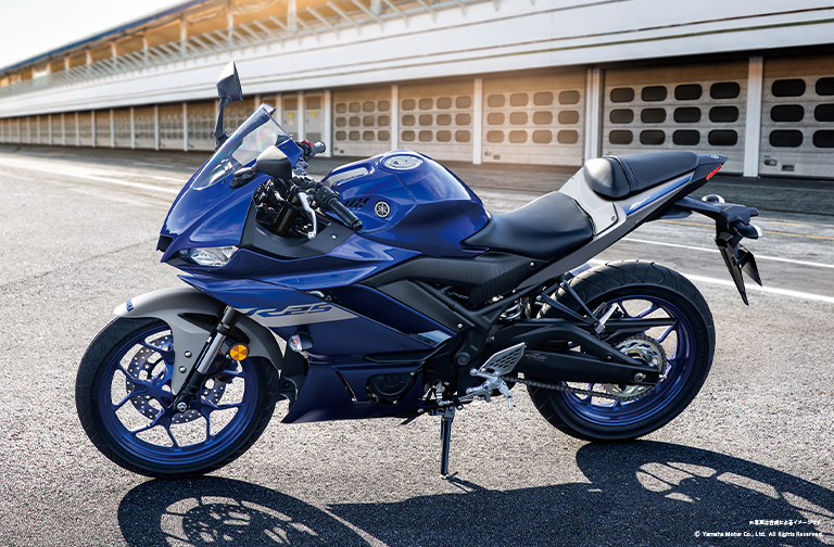 R25 spesifikasi Jepun varian biru dipadankan set fork terbalik (USD) hitam. Varian hitam tampil serba hitam sepenuhnya, manakala varian perak dipadukan fork USD keemasan yang nampak cukup menyerlah. Spesifikasi sportbike suku liter itu dipacu enjin 4-lejang dwi silinder sebaris 249cc DOHC penyejukan cecair berkuasa 33hp @ 12,000rpm dan tork 23Nm @ 10,000rpm