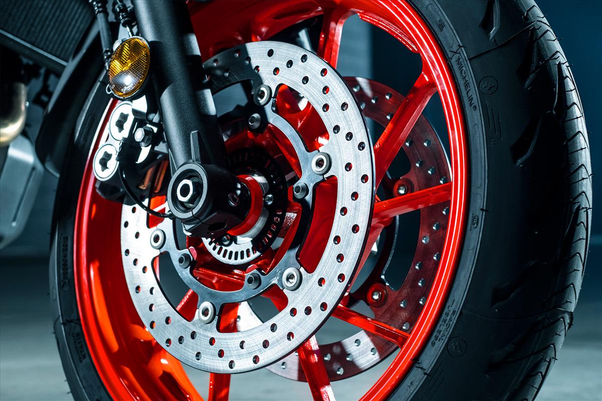 - Sistem brek jenis dwi-cakera 298mm di depan dan cakera tunggal 245mm di belakang yang dibekalkan Sistem Brek Anti-Kunci (ABS) pada kedua-dua roda.