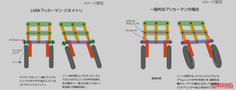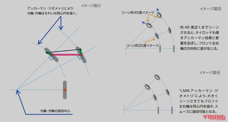 Semakin dekat mahu membelok, keseimbangan beban motosikal cenderung tidak stabil. Yamaha berulang kali melakukan ujian dan hasilnya, LMW menunjukkan respon stabil ketika masuk dan keluar selekoh. Malah dikatakan lebih mudah mengambil selekoh dengan cekap walaupun tunggangan tidak stabil seperti ketika menerkam masuk sudut jalan atau cuba meminimumkan goyangan.