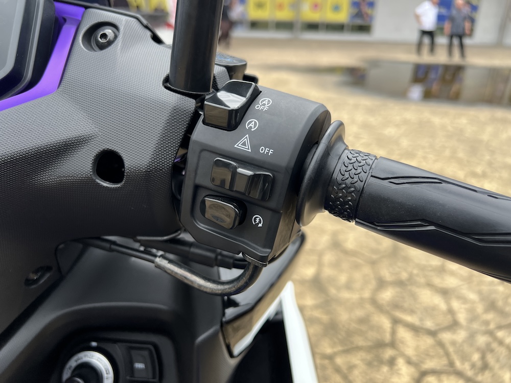 - Turbo Y-Shift: Sistem kawalan ibu jari dengan tiga tahap pecutan dan nyah pecut untuk sensasi tunggangan seakan ciri quickshiter pada sportbike.