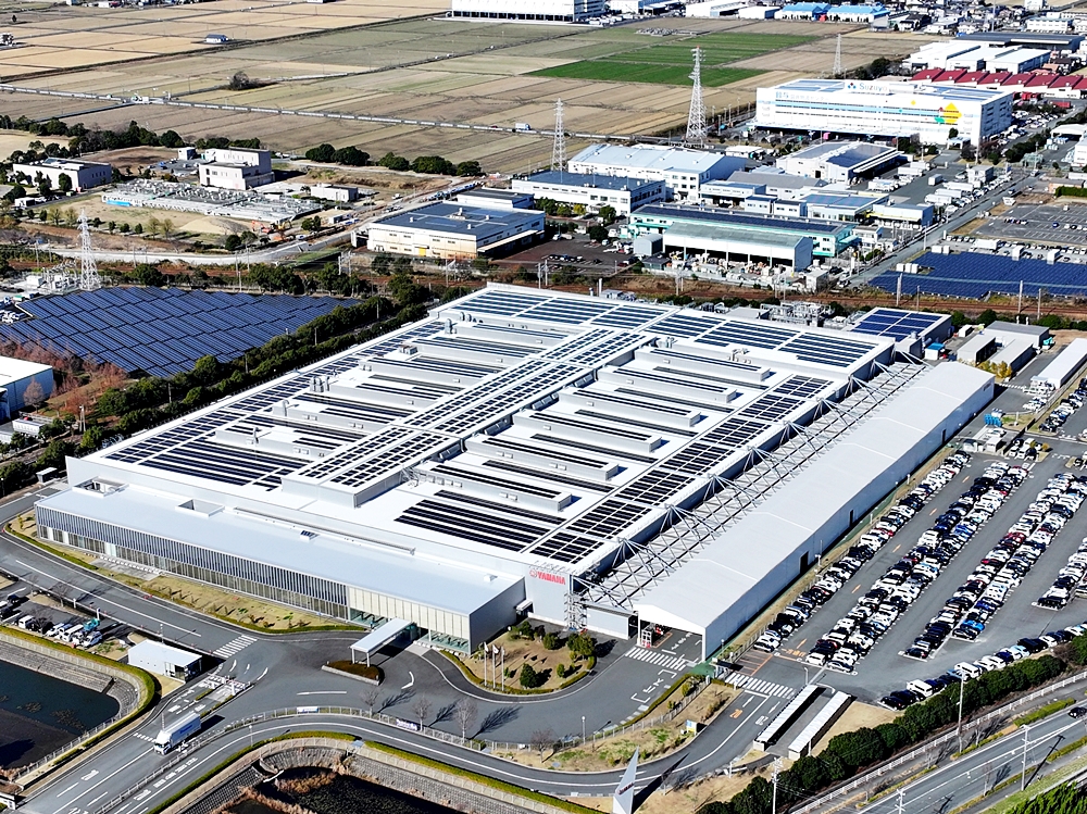 Yamaha dengan aktiviti utama menghasilkan motosikal mengumumkan penggunaan solar di Kilang Fukuroi Minami, Jepun.