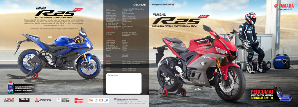 - Yamaha R25 facelift (2019) didatangkan dalam dua pilihan warna iaitu biru dan merah.
