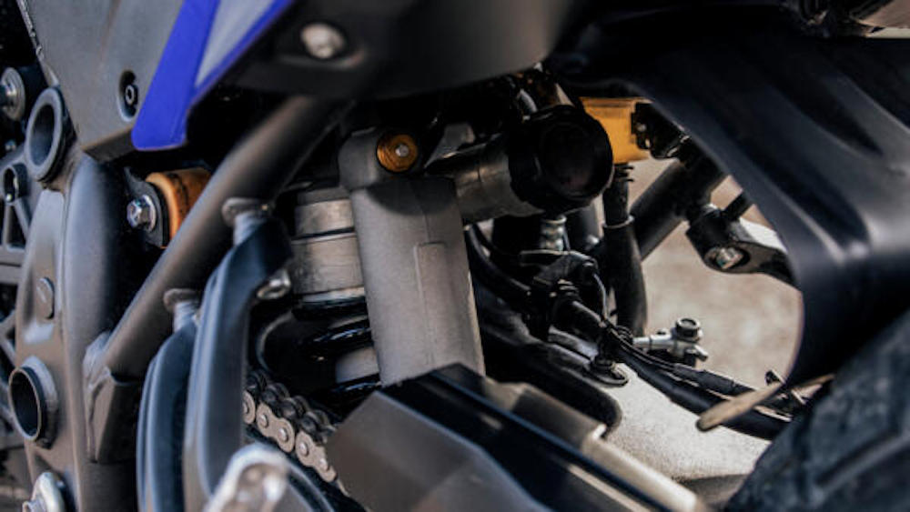 Komponen fork kini boleh laras penuh jenis KYB 43mm, manakala belakang menggunakan, monoshock KYB boleh laras jenis prabeban, lantun semula dan redaman.