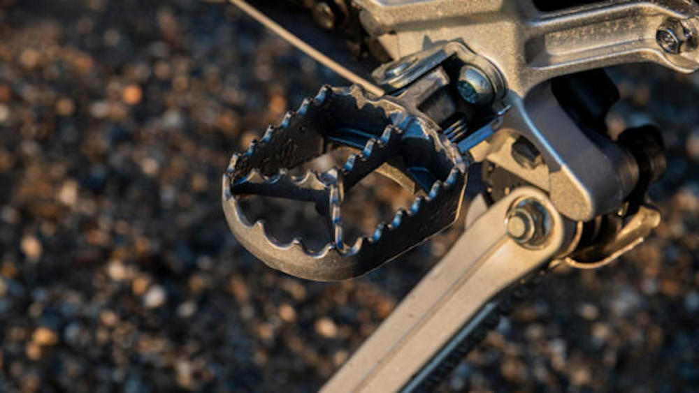 Model berkenaan juga mendapat peg kaki titanium boleh laras dengan permukaan menajam untuk memberikan lebih cengkaman kaki.