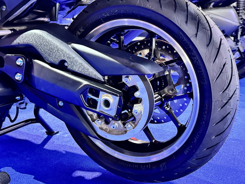 - Rim aloi 15 inci dengan tayar 120/70 (depan), dan 160/60 (belakang).