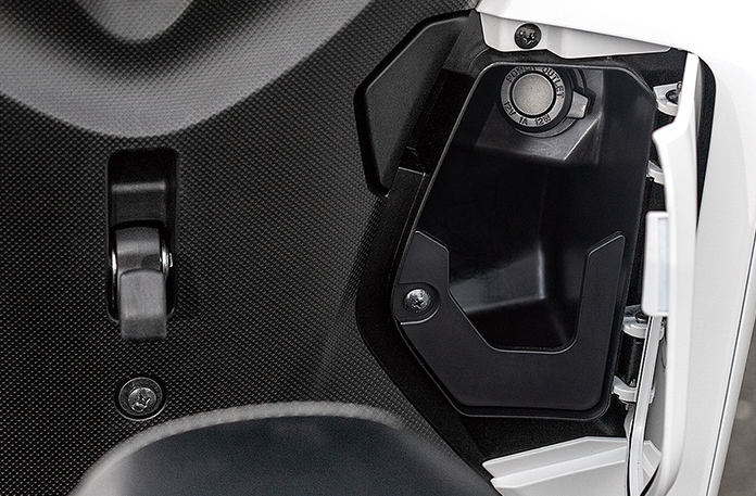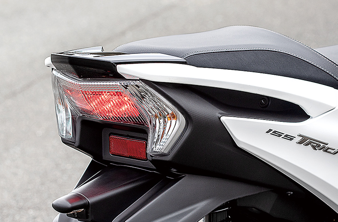 Skuter ini juga menawarkan ruang simpanan bawah pelana seluas 23.5 liter dengan pencahayaan LED dan soket 12V. Ciri lain Tricity 155 (2020) ialah brek parkir di bawah suis gear sebelah kiri.