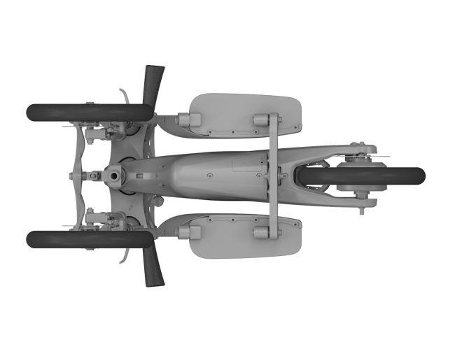 Bahagian tengah dijadikan kompartmen bateri untuk bekalan kuasa. Menariknya, autoped ini menggunakan sistem dua roda depan yang dpinjamkan daripada siri LWM (Leaning Multi-Wheeler) Yamaha. Ia berfungsi menjadikan roda depan kiri-kanan saling bergantung satu sama lain dan ini memberikan kelebihan menunggang atas laluan yang berbeza permukaan jalan atau ketika mengambil selekoh.