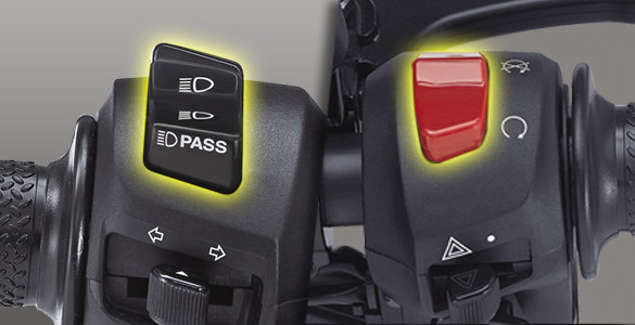 - Ada suis pemati enjin dan lampu potong (pass beam) seperti digunakan motosikal kuasa besar.