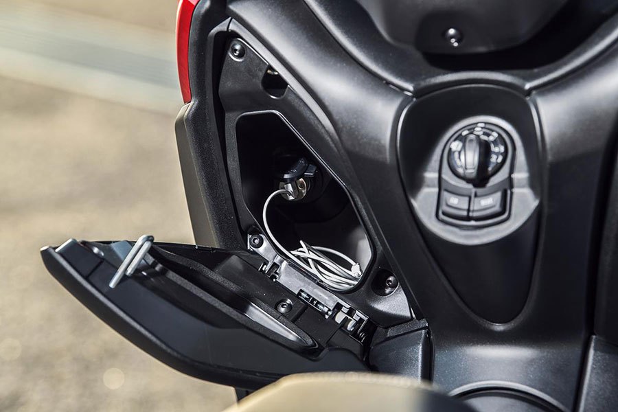 Penunggang juga boleh memilih posisi hendal yang sesuai dengan gaya tunggangan. Panel meter LCD berwarna gelap, tetapi masih jelas dilihat walaupun di bawah sinaran mentari. Ciri tambahan lain ialah soket 12V yang boleh digunakan untuk mengecas telefon pintar, terletak dalam ruang simpanan sebelah kiri. Ruang simpanan bawah kerusi yang luas mampu memuatkan dua helmet pada satu-satu masa.
