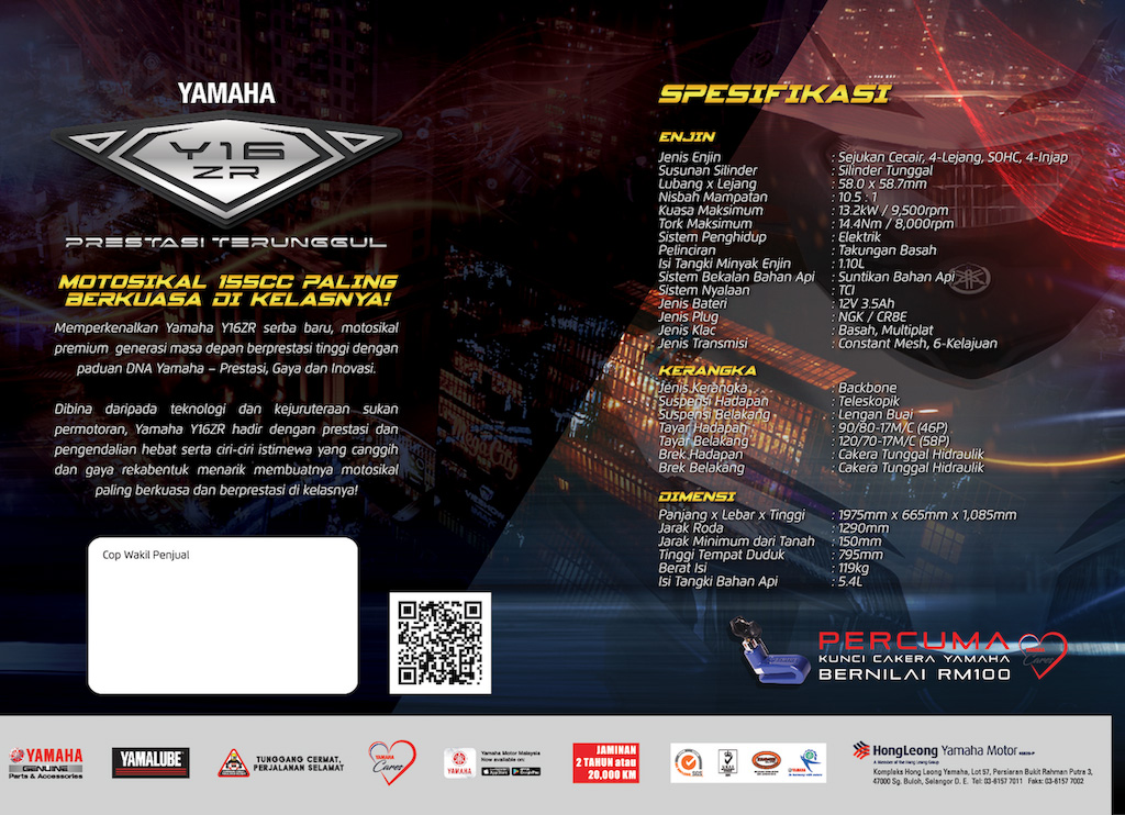 Jim Khor berkata lagi, model lama Y15ZR akan terus jual bersama Y16ZR. Kedua-dua model itu akan dijual secara berasingan kerana masih ada permintaan daripada pelanggan.