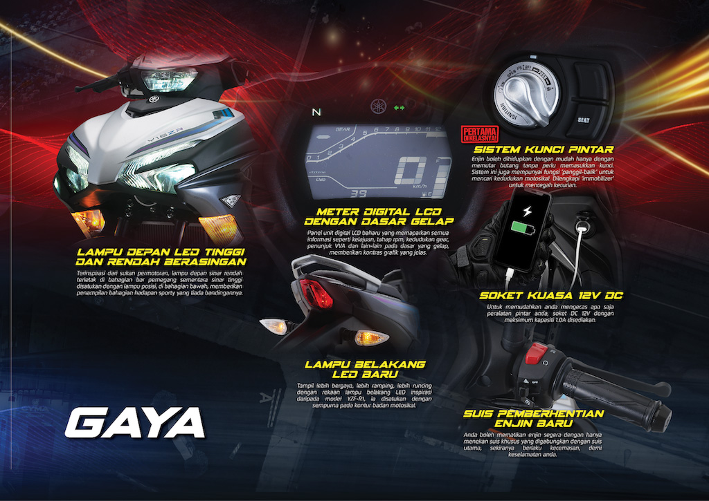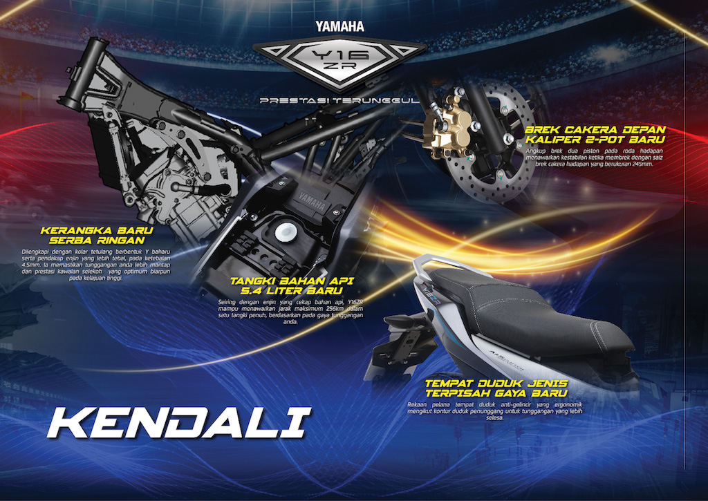 Model bertemakan ‘Prestasi Terunggul’ ini ditawarkan dalam tiga pilihan warna: kuning, perak dan biru berbanding empat opsyen warna pada Y15ZR sebelum ini.