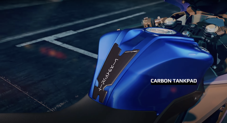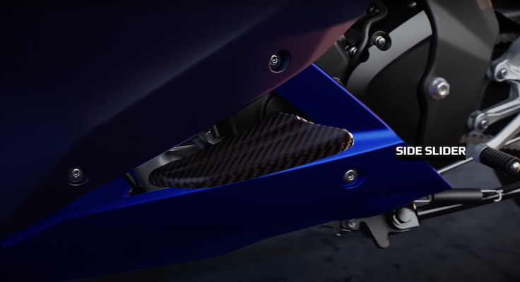 - Ada set slider bentuk winglet yang ditambah pada frem motosikal yang menyerlahkan lagi imej sportbike dan memberi imbangan lebih baik selain memberi perlindungan jika terbabas.