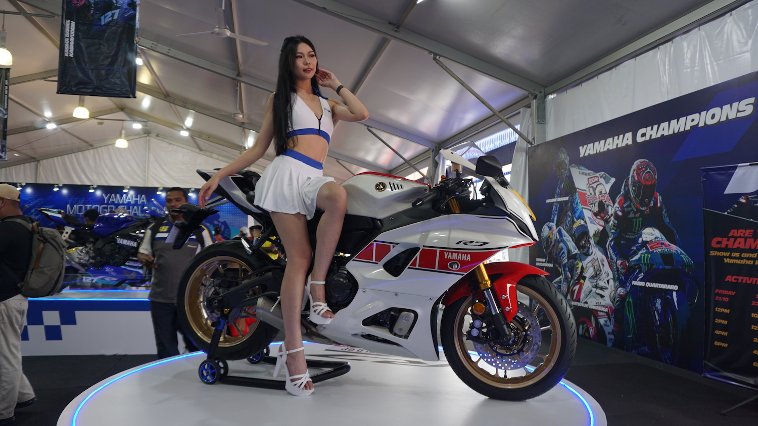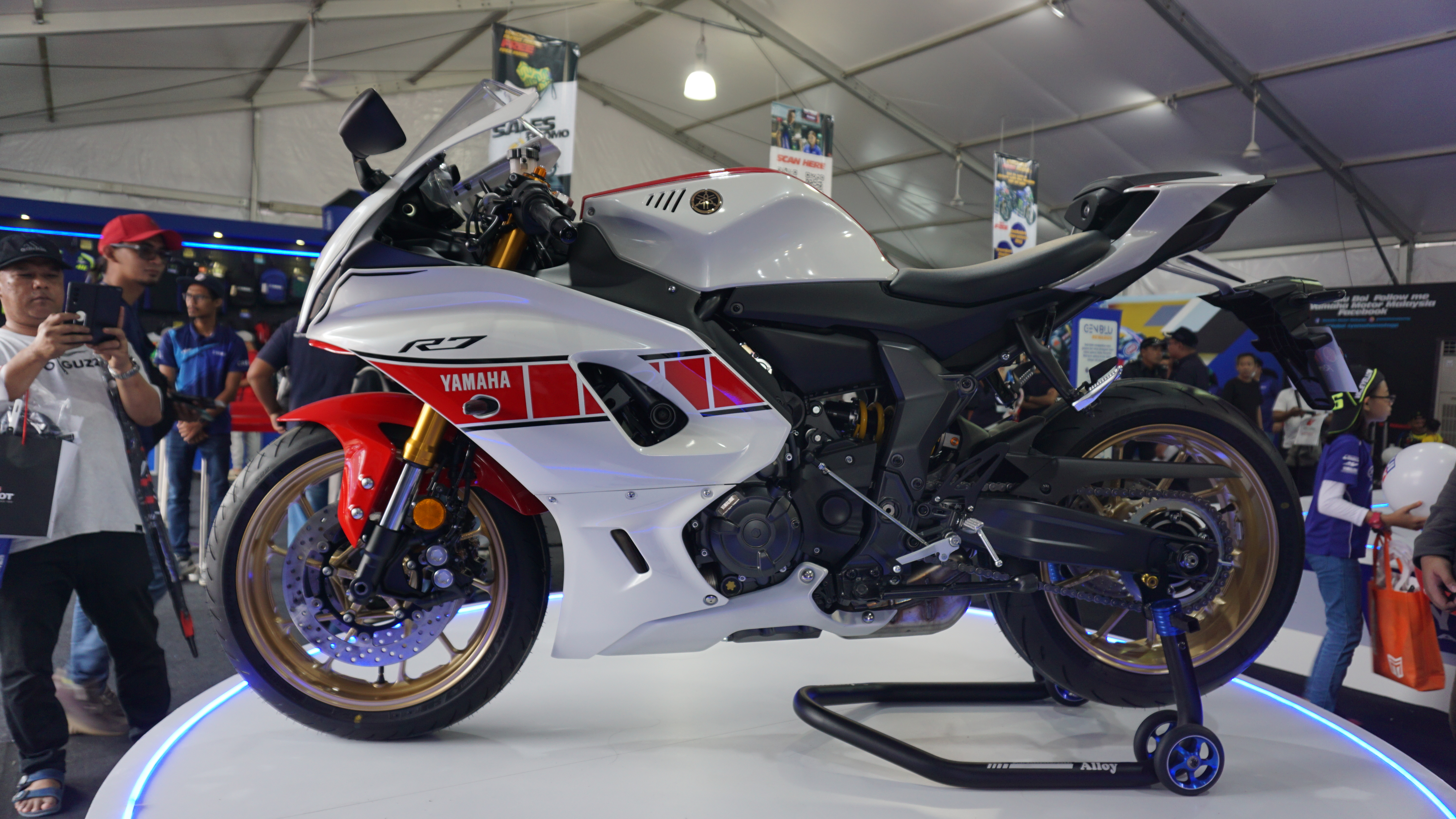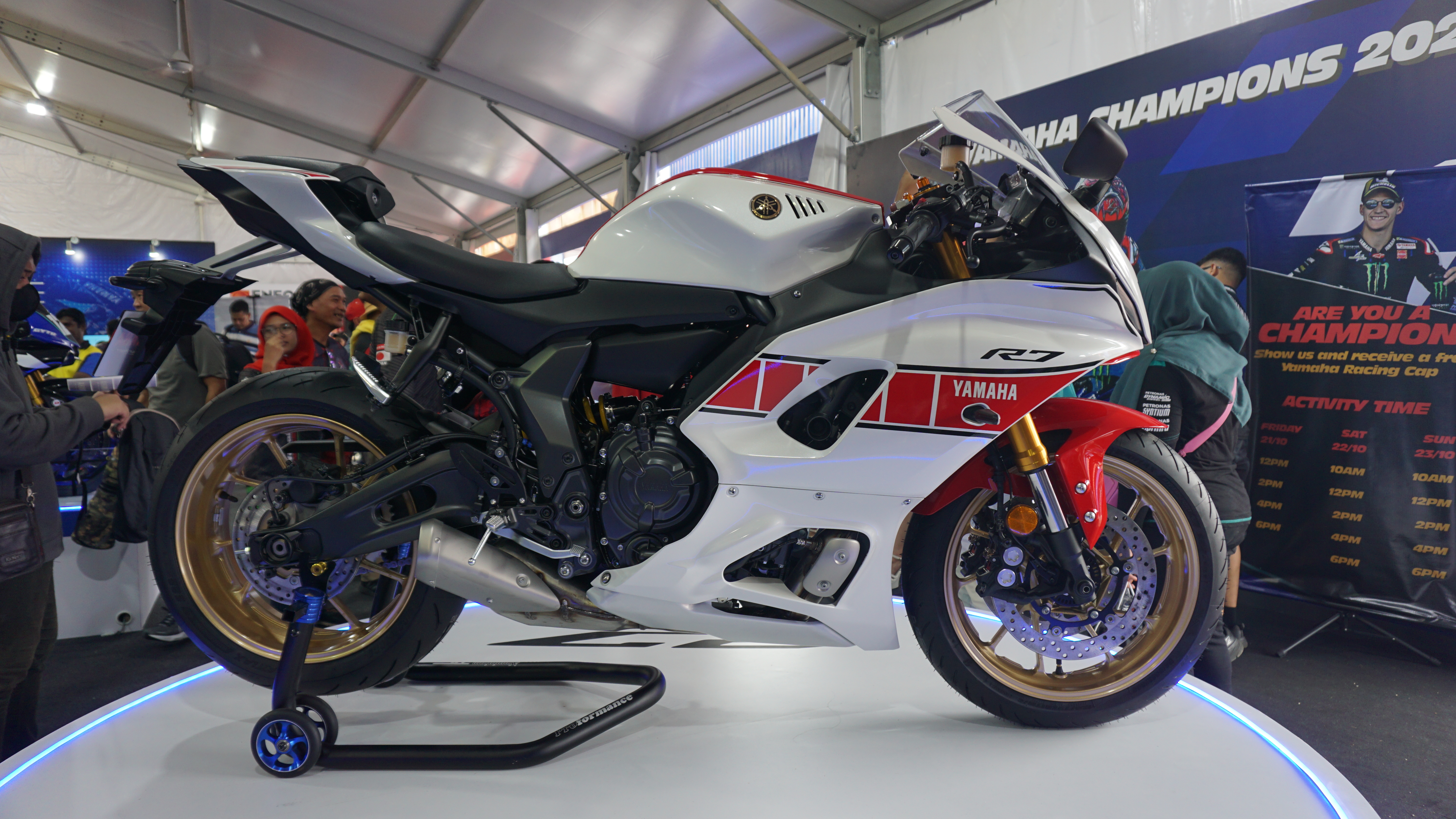 HONG Leong Yamaha Motor (HLYM) sedang mempertontonkan model sportbike Yamaha YZF-R7 di ruang pameran sempena penganjuran GP Malaysia 2022 di Litar Antarabangsa Sepang (SIC).